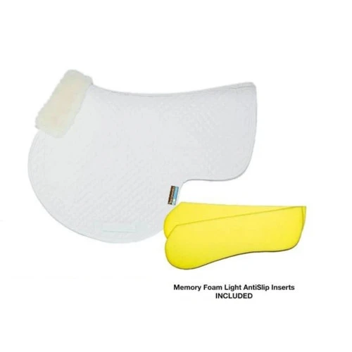 Fleeceworks Therawool Quilted Cross Country Square Pad with Perfect Balance relieves pressure at the withers with its anatomically correct top line. The Perfect Balance saddle pad includes one set of Memory Foam Lite AntiSlip Inserts. Sold separately are the Perfect Balance Front Visco Elastic Foam Inserts.