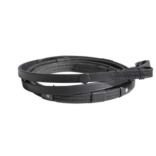 Reins Adjust Dressage Reins from In Horse We Trust use a high tech elastomer to improve your grip and communication. Extra comfortable dressage style Reins Adjust will not get hot, melt, or become sticky and are UV resistant. In fact, the elastomer grip material withstands temperatures ranging from -60 degrees to 200 degrees! Reins Adjust flexible grip reins offer a level of performance superior to rubber reins. The fronts and buckle end of the Reins Adjust Dressage Reins are durable vegetable tanned full grain soft, supple leather. Reins Adjust flexible grip black reins offer superior performance and comfort.
