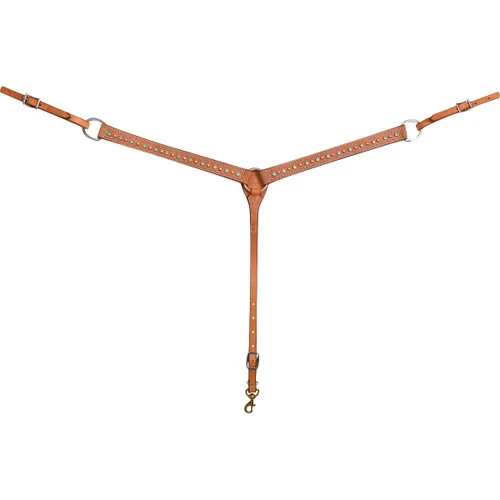 The Martin Saddlery Floral Dots Breast Collar makes an extra nice tack set with the matching Martin Saddlery Floral Dots Brow Headstall. The Western breast collar is sturdy and handsome with Hermann Oak leather that’s tanned in the USA and a distinctive roughout texture. Beautiful copper and oxidized floral spots add color and flair to the Floral Dots Breast Collar.