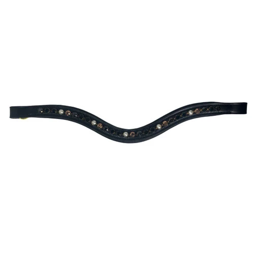 Sophisticated and classic Swarovski crystals and pearl stones on black leather are distinctive for low key bling. The Cobalt & Copper Curved Browband would look so attractive in competition, for clinics, and for elevating your style on training rides.