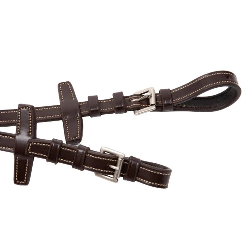 Signature by Antarès Web Reins with Stops have an excellent grip with low profile and leather hand stops. The plain leather fronts are fitted with leather martingale stops for your running martingale.